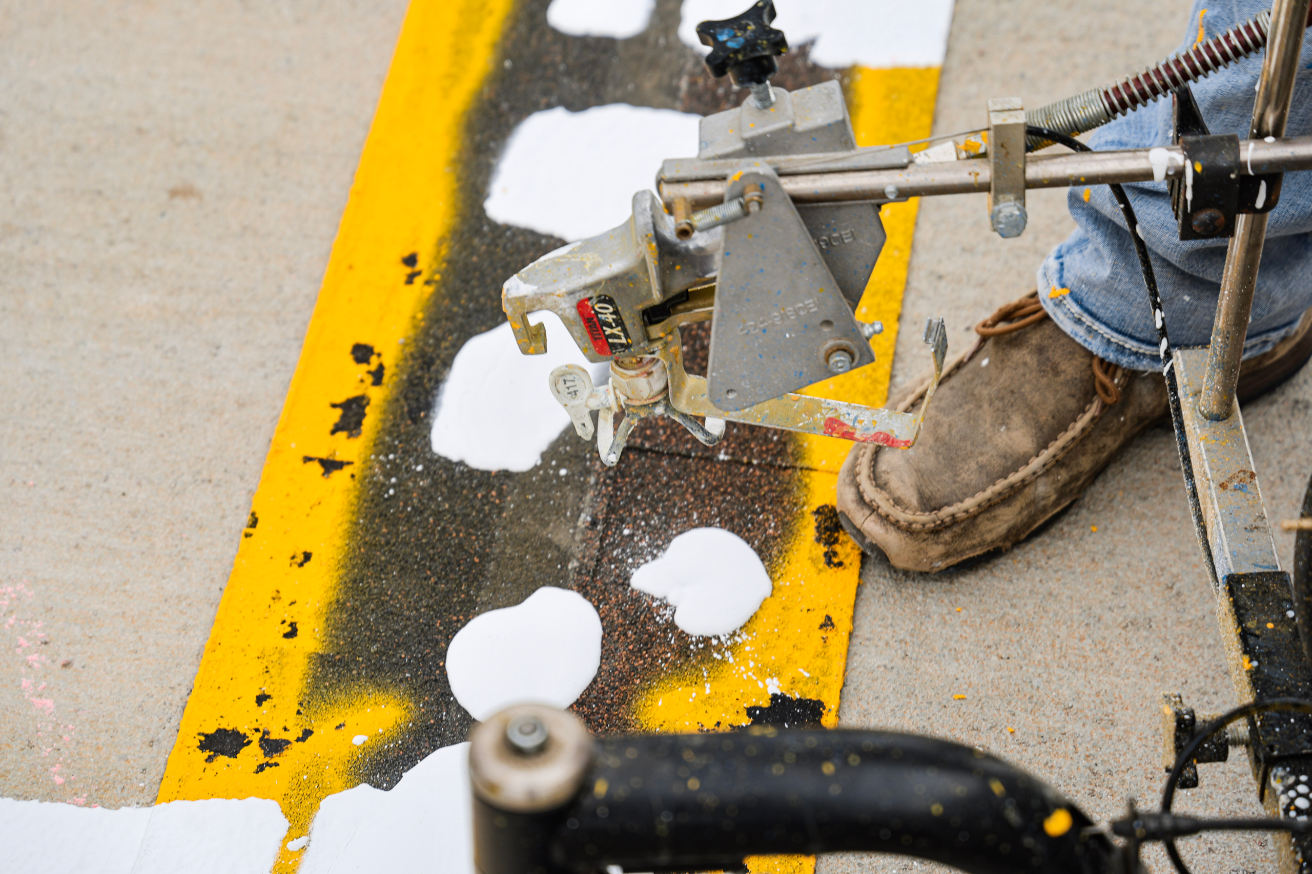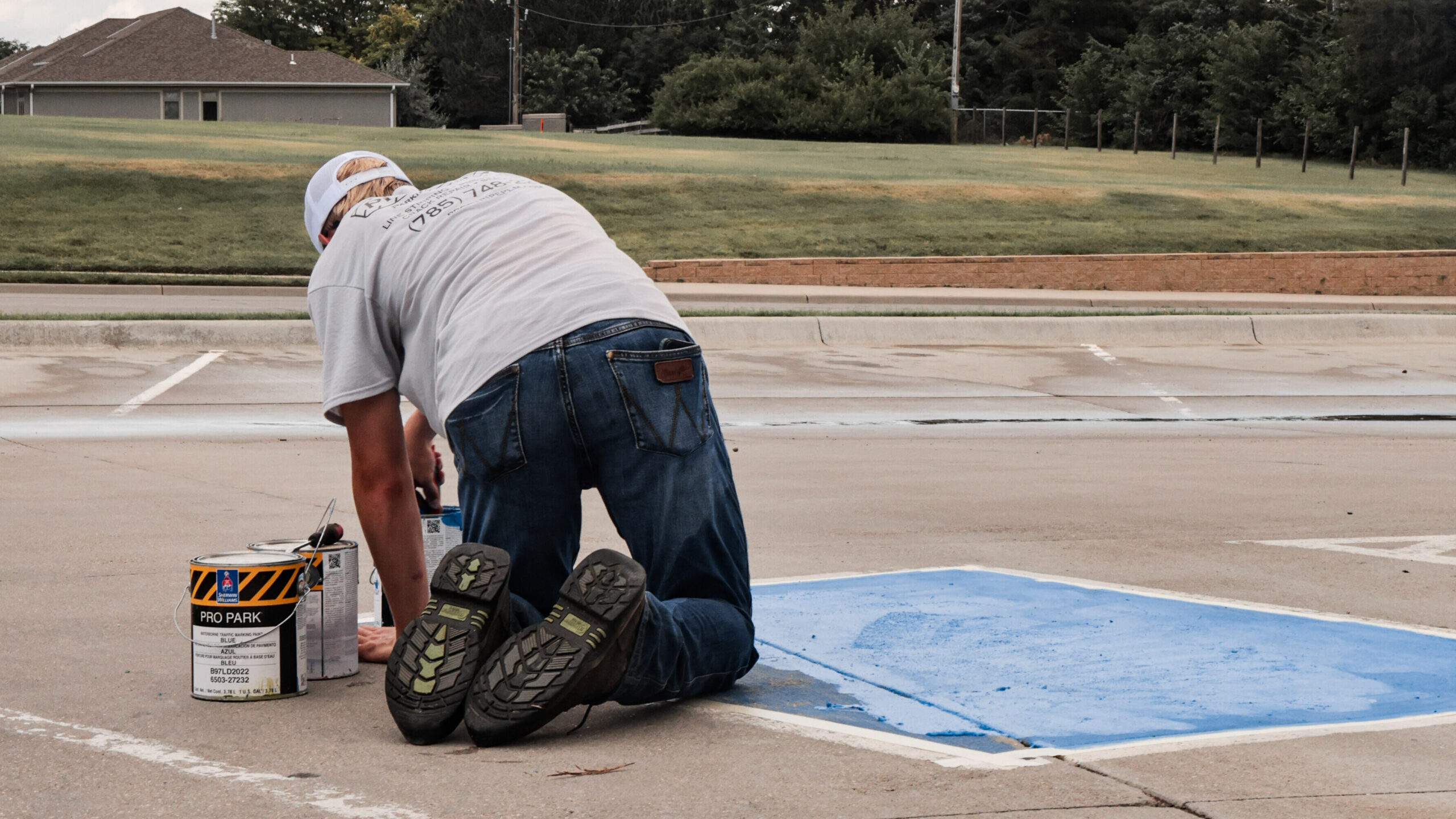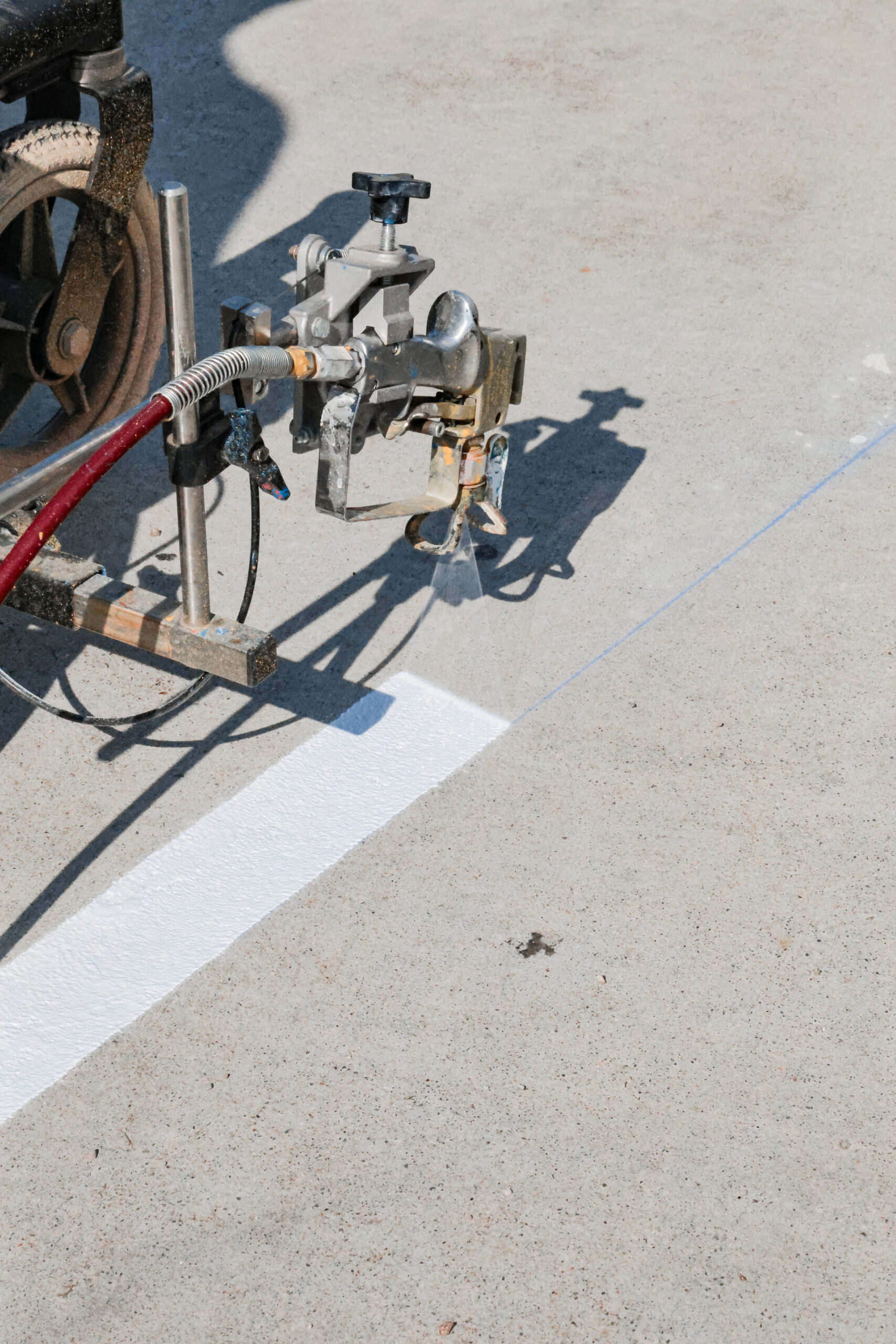 COMMERCIAL EQUIPMENT & MATERIALS. We use striping machines and traffic paint built for durability in Kansas weather conditions.