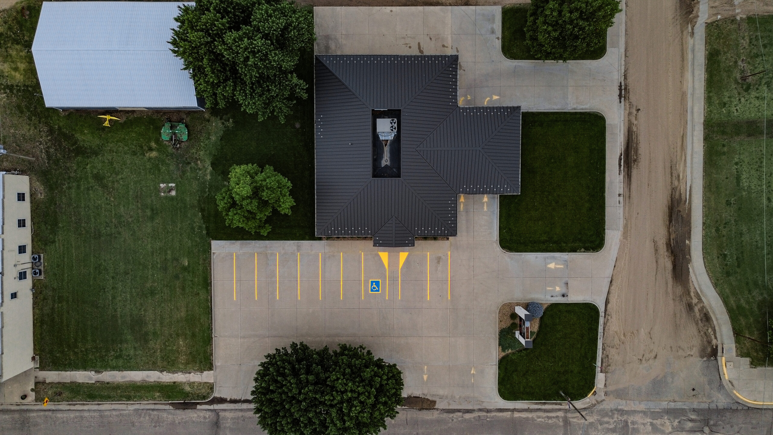 We applied sharp, long-lasting striping throughout the lot, along with clear stencils for ADA spaces, and traffic flow. The updated markings created a clean, easy-to-navigate layout for both staff and visitors at SNJ Bank of Kansas.