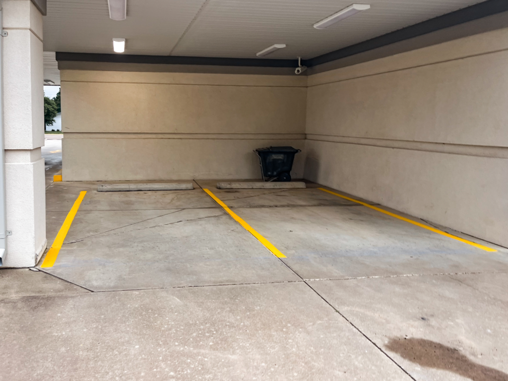 We applied fresh, high-visibility line striping across all stalls, ADA spaces, and directional markings.